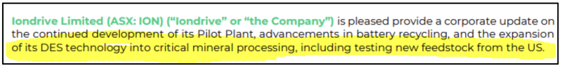 As we mentioned above, ION announced a few months ago that it was moving “into critical mineral processing, including testing new feedstock from the US”.