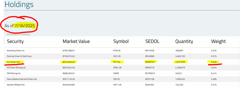 (Sprott’s ETF has been slowly increasing its position - taking SS1 from 0.36% of the fund at 30 June 2025 to 0.45% as of Wednesday)