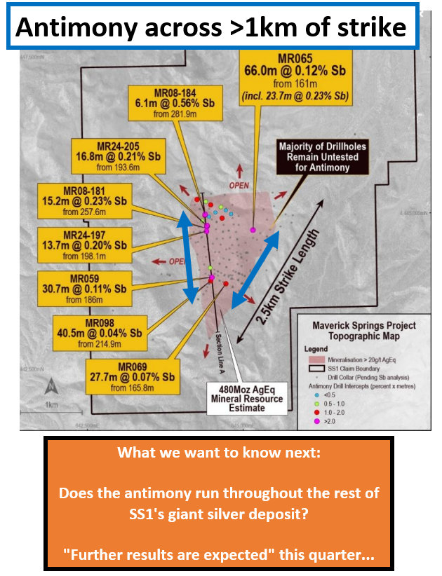 SS1’s giant silver resource estimate consists of ~200 historical drill holes that were only ever tested for silver and gold... but NOT for critical defense metal antimony.
