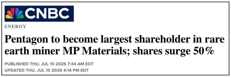 (this is not something that the “free market” US Government generally does, and it shows the importance of critical minerals to national security)