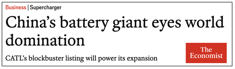CATL already supplies 38% of the global EV market (including Tesla, BMW, Toyota and Volkswagen).