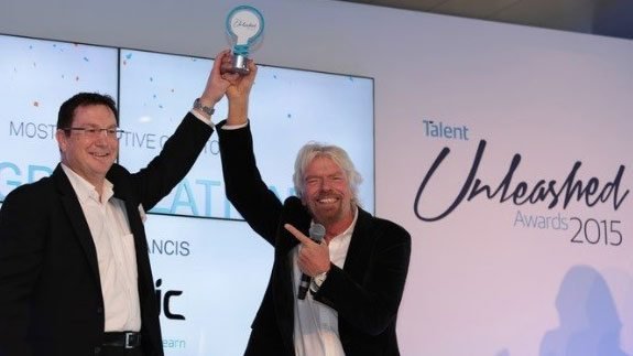 Velpic Chief Executive Russell Francis receives Most Disruptive CIO/CTO award from Sir Richard Branson at Talent Unleashed Awards